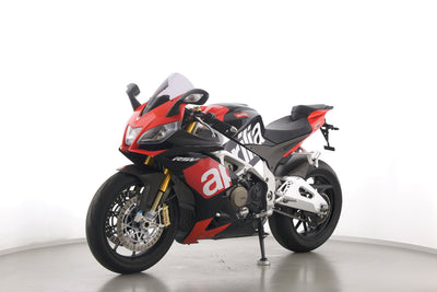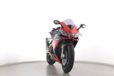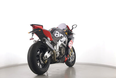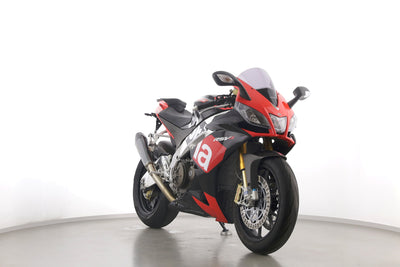 Eine Aprilia RSV 4 Factory in gepflegtem Zustand u.a. mit HP-Corse-Auspuff mit Carbon und e-Nr sowie Öhlins-Fahrwerk.