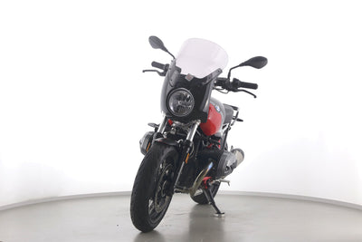 Eine scheckheftgepflegte BMW R nineT Pure aus zweiter Hand in gepflegtem Zustand u.a. mit Akrapovic-Endschalldämpfer sowie Wunderlich-R90-Lampenmaske.