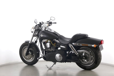 Eine Harley-Davidson Dyna Fat Bob FXDF in gepflegtem Zustand u.a. mit ScreaminEagle-Luftfiltergehäuse sowie Ledertasche am Rahmen.