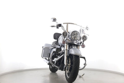 Eine Harley-Davidson Road King FLHR aus zweiter Hand in gepflegtem Zustand u.a. mit Windschild und HD-Koffersystem.