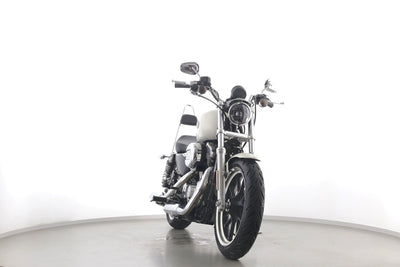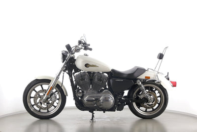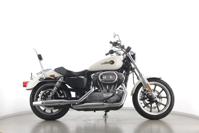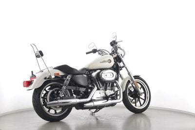 Eine Harley-Davidson Sportster XL 883 L Superlow aus zweiter Hand in gepflegtem Zustand u.a. mit vorverlegter Fußrastenanlage und Sissybar.