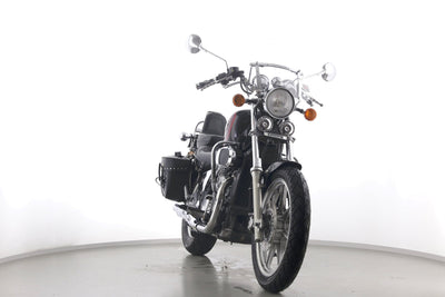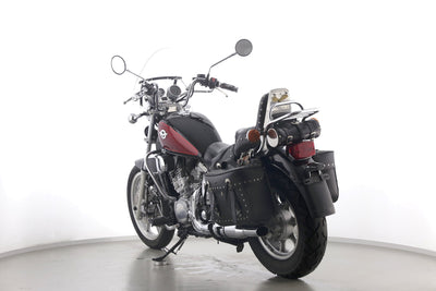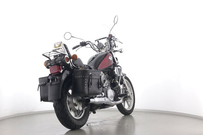Eine Kawasaki VN 750 in gebrauchtem Zustand u.a. mit Windschild und Sturzbügel.
