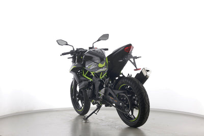 Eine scheckheftgepflegte Kawasaki Z 125 in gepflegtem Zustand u.a. mit kurzem Kennzeichenhalter sowie Custom-Ganganzeige.