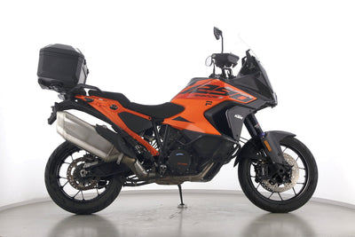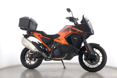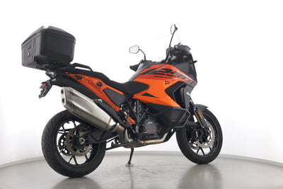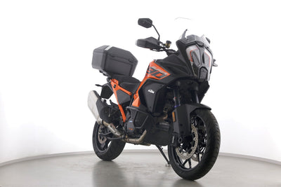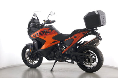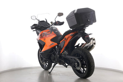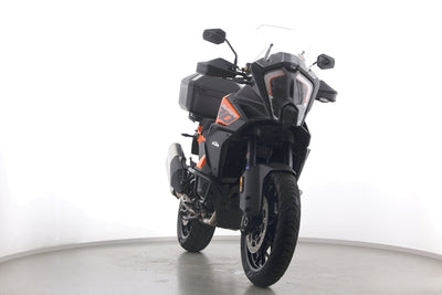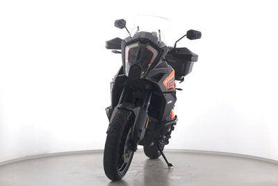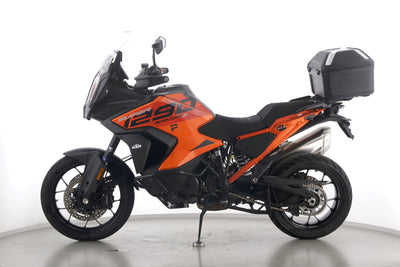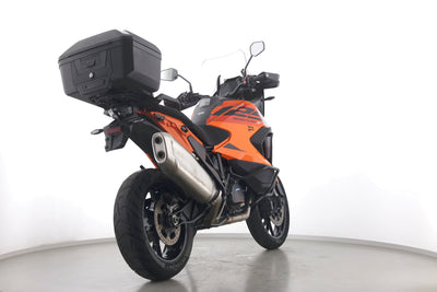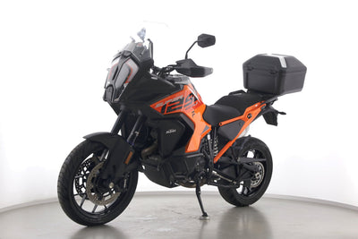 Eine scheckheftgepflegte KTM 1290 Super Adventure S in gepflegtem Zustand u.a. mit großem KTM-Topcase sowie Sturzbügeln.