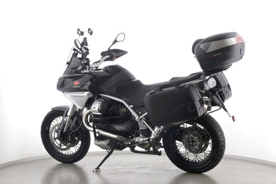 Eine Moto Guzzi Stelvio 1200 8V in gepflegtem Zustand u.a. mit Hepco&Becker-Koffern (Junior-Reihe) sowie Shad-Topcase.