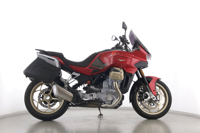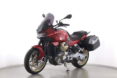 Eine scheckheftgepflegte Moto Guzzi V100 Mandello aus erster Hand in gepflegtem Zustand u.a. mit Guzzi-Koffersystem gleichschließend sowie elektrisch verstellbarem Windschild.