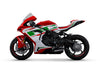 Mechanik, Fahrgestell und Aerodynamik wurden für einen kompromisslosen Einsatz entwickelt. Das Hinterrad wurde um 10% leichter gemacht und bietet ein um 7% niedrigeres Trägheitsmoment. Die in die Kohlefaserverkleidung integrierten aerodynamischen Flügel garantieren einen Abtrieb von 8 kg.