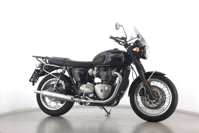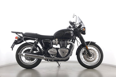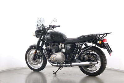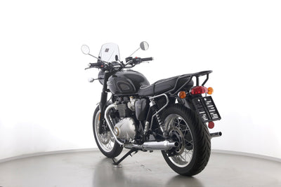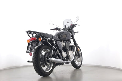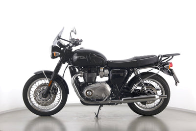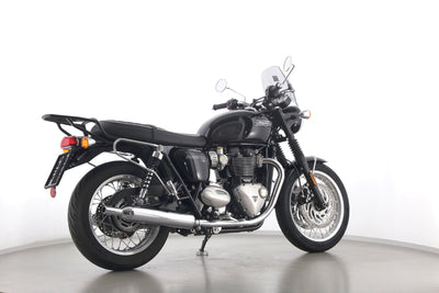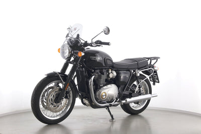 Eine scheckheftgepflegte Triumph Bonneville T120 aus zweiter Hand in sehr gepflegtem Zustand u.a. mit Temporegelung sowie Givi-Gepäckträger.