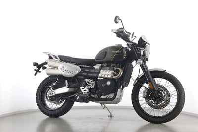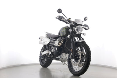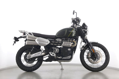 Eine scheckheftgepflegte Triumph Scrambler 1200 XC aus erster Hand in gepflegtem Zustand u.a. mit LED Zusatzscheinwerfern sowie Öhlins-Federbeinen.