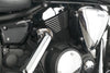 Eine Yamaha XVS 950 A Midnight Star aus zweiter Hand in gepflegtem Zustand mit Hepco&Becker-Packtaschensystem und Rückenlehne.