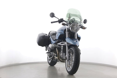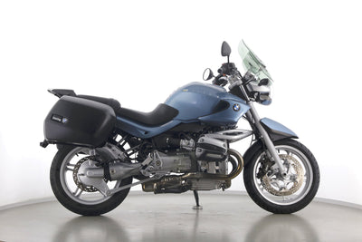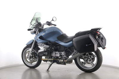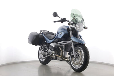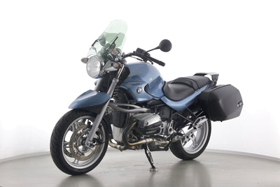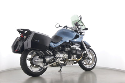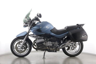 Eine BMW R 1150 R in gebrauchtem Zustand u.a. mit BMW-Koffersystem incl. Innentaschen sowie Wunderlich-Lenkererhöhung.