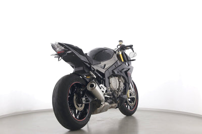 Eine scheckheftgepflegte BMW S 1000 R in gepflegtem Zustand u.a. mit kurzem Kennzeichenhalter und V-Trec-Hebeln.