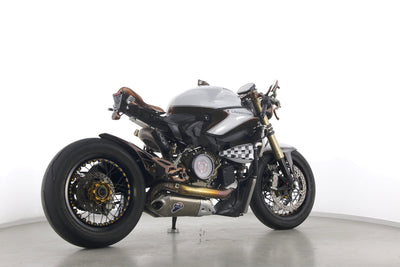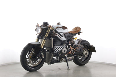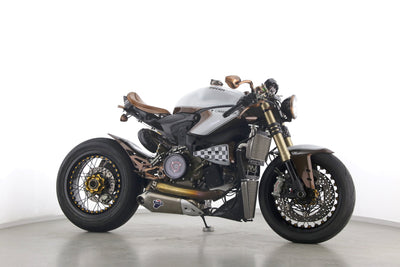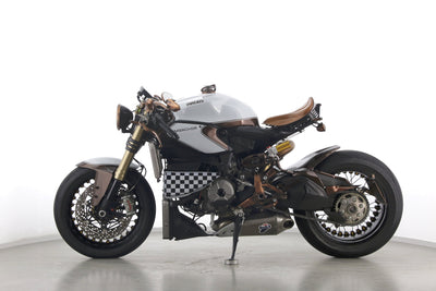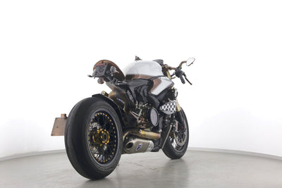 Eine Ducati 1199 Panigale LLC in sehr gepflegtem Zustand u.a. als Komplett-Umbau im Steampunk-Stil mit Termignoni-Endschalldämpfer und Heckumbau.