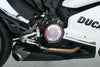 Eine Ducati 1299 Panigale S in Topzustand u.a. mit Öhlins-Fahrwerk sowie transparentem Kupplungsdeckel von Dukabike.