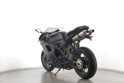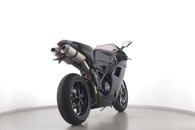 Eine Ducati 848 EVO in gebrauchtem Zustand u.a. mit kurzem Kennzeichenhalter und LED-Blinkern hinten.