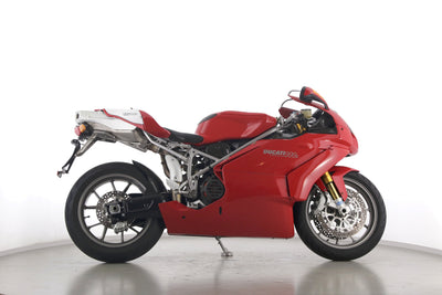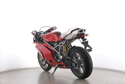 Eine Ducati 999S Monoposto in gepflegtem Zustand u.a. mit Öhlins-Fahrwerk sowie Carbon-ZR- und -Hinterrad-Abdeckungen.