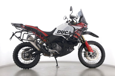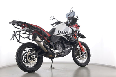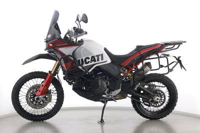 Eine scheckheftgepflegte Ducati DesertX Rally aus erster Hand in sehr gepflegtem Zustand u.a. mit Outbackmotortek-Sturzbügel in schwarz sowie Wunderlich-Komfortsitzbank.