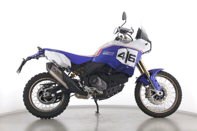 Diese Ducati DesertX ist buchstäblich einmalig. Sie wurde im Rahmen des exklusiven Ducati Unica Programms in direkter Zusammenarbeit mit den Designern und Planern des Centro Stile Ducati in Borgo Panigale erschaffen. Diese Ducati Desert X Unica stellt nicht nur das weltweit erste ausgelieferte Exemplar dieser limitierten Sonderserie dar, sondern war zugleich das erste Unica-Modell, das innerhalb Deutschlands an einen Endkunden verkauft wurde. Ihre detailreiche Sonderlackierung im Rallye-Look mit passender Sitzbank wird durch edle Zubehörteile perfekt ergänzt. Einzelanfertigung von Gabel, Motorschutz, Lenker, Felgen, Sitzbank und Auspuff von Ducati Centro Stile. Der Umbau ist auf der offiziellen Ducati Seite aufzufinden und sowohl etwas für echte Sammler als auch aktive Fahrer - das Fahrzeug ist straßenzugelassen und sofort fahrfertig.