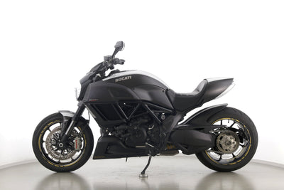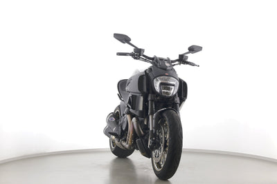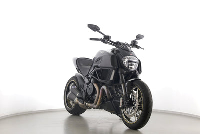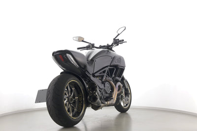 Eine Ducati Diavel Carbon in gepflegtem Zustand u.a. mit Termignoni-Endschalldämpfer sowie seitlichem Kennzeichenhalter.