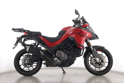 Eine Ducati Multistrada V2 S aus zweiter Hand in gepflegtem Zustand u.a. mit Kofferträger und Gepäckbrücke.