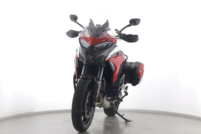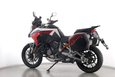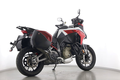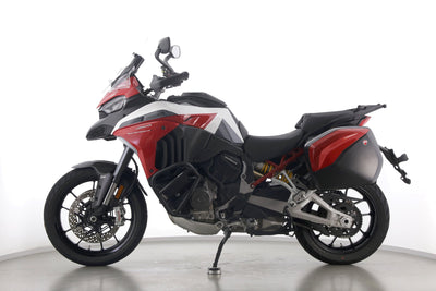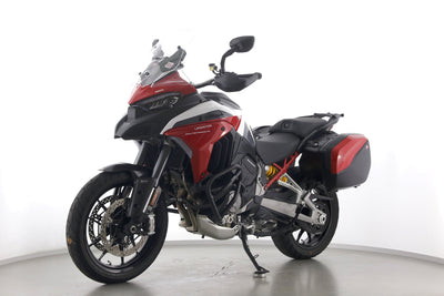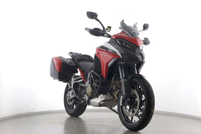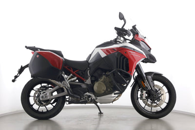 Eine scheckheftgepflegte Ducati Multistrada V4 S Full Sport aus zweiter Hand in gepflegtem Zustand u.a. mit Akrapovic-Endschalldämpfer sowie Ducati-Koffersystem gleichschließend.