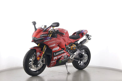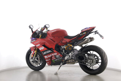 Eine Ducati Panigale V2 S als Neufahrzeug u.a. mit Sonderdekor Moto GP und LighTech-Kennzeichenhalter.