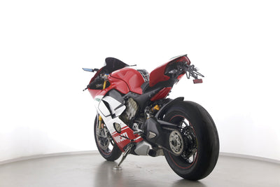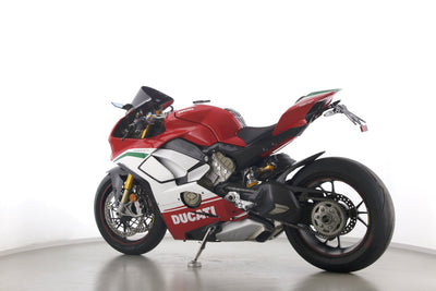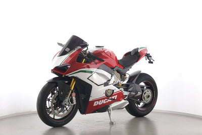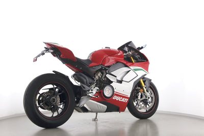 Eine scheckheftgepflegte Ducati Panigale V4 Speciale aus zweiter Hand in gepflegtem Zustand u.a. mit Öhlins-Fahrwerk sowie transparentem Kupplungsdeckel.