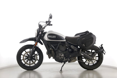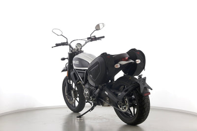 Eine scheckheftgepflegte Ducati Scrambler Icon aus zweiter Hand in gebrauchtem Zustand u.a. mit Originalausstattung sowie SW-Motech-Softbags incl. Innentaschen.