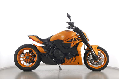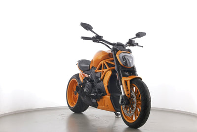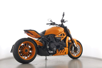 Eine scheckheftgepflegte Ducati XDiavel LLC aus zweiter Hand in Topzustand u.a. mit Sonderlackierung in Lambo-Orange sowie seitlichem Kennzeichenhalter von Rizoma.