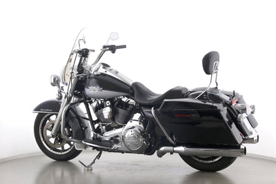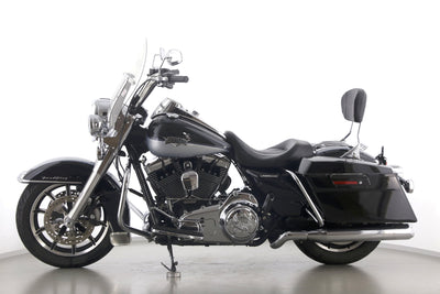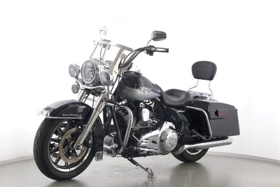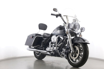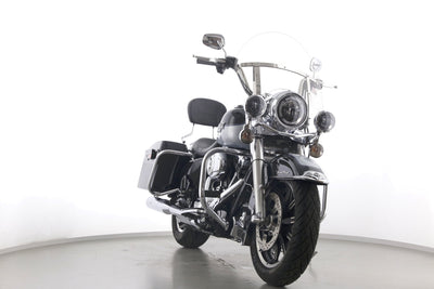 Eine Harley-Davidson Road King Classic FLHRC in gepflegtem Zustand u.a. mit KessTech-V2-Klappenauspuff sowie HD-Koffersystem.