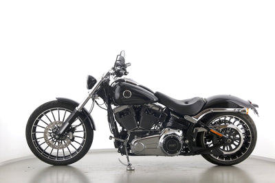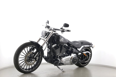 Eine Harley-Davidson Softail Breakout FXSB aus zweiter Hand in gepflegtem Zustand u.a. mit Penzl-Klappenauspuffanlage und Turbinenfelgen.