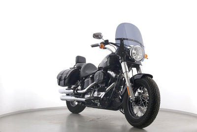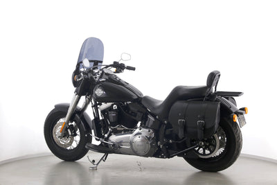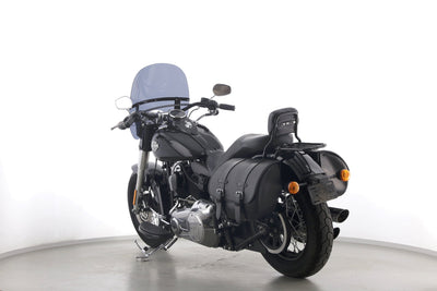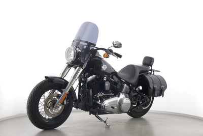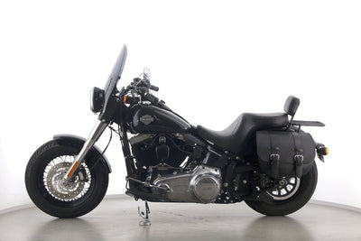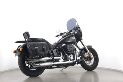 Eine scheckheftgepflegte Harley-Davidson Softail Slim FLS 103 in gepflegtem Zustand u.a. mit Lederpacktaschen sowie dunkler Scheibe.