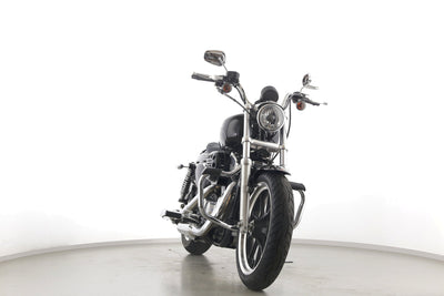 Eine scheckheftgepflegte Harley-Davidson Sportster XL 883 L Superlow aus zweiter Hand in gepflegtem Zustand u.a. mit Miller-Endschalldämpfer sowie Sturzbügel.