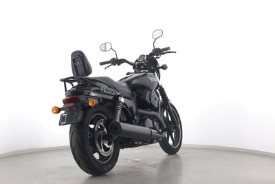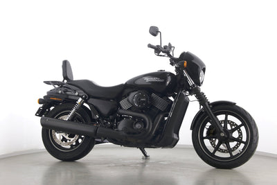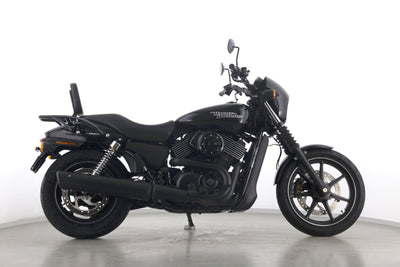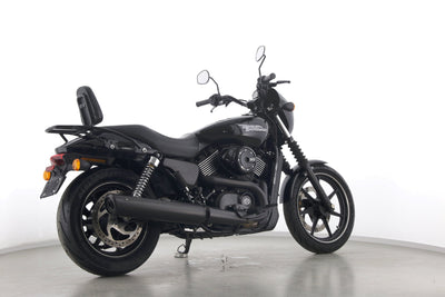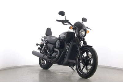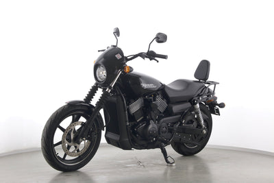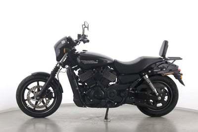 Eine Harley-Davidson Street 750 aus zweiter Hand in gepflegtem Zustand u.a. mit Originalausstattung und Gepäckträger.