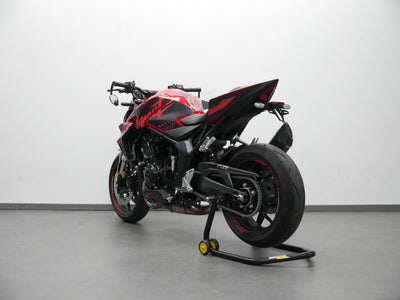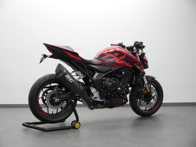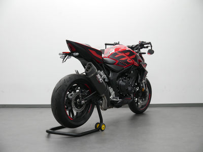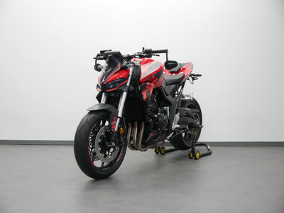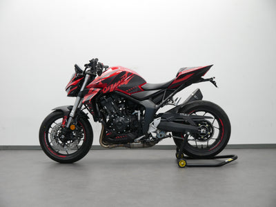 Die neue CB1000 Hornet mit ihrem Vierzylindermotor ist ein erstklassiges Naked Bike, das den Asphalt zum Glühen bringt. Throttle By Wire sorgt für präzise Kontrolle, während das Fahrwerk mit der einstellbaren SHOWA 41mm SFF-BP Upside-Down-Gabel und dem Pro-Link-Federbein ausgestattet ist. Die unverfälschte, aggressive Streetfighter-Attitüde wird durch einen markanten LED-Doppelscheinwerfer unterstrichen. Das 5-Zoll TFT-Farbdisplay und die Honda RoadSync-Konnektivität sorgen für die nötigen Informationen.