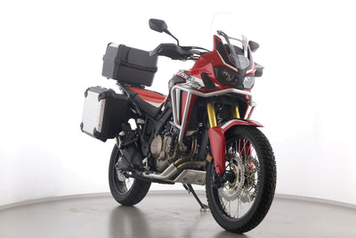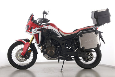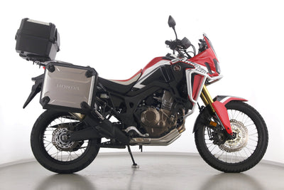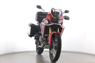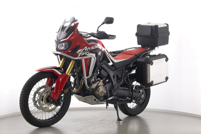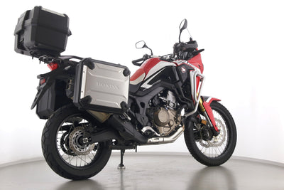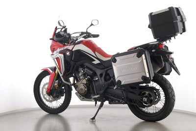 Eine Honda CRF 1000 L Africa Twin aus erster Hand in gepflegtem Zustand u.a. mit Honda-Koffersystem und Sturzbügel.