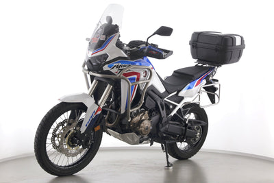 Eine scheckheftgepflegte Honda CRF 1100 L Africa Twin DCT aus zweiter Hand in gepflegtem Zustand u.a. mit Doppelkupplungsautomatik DCT sowie Givi-Topcase groß.