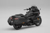 Die 2025er GL1800 Gold Wing mit DCT­Doppelkupplungsgetriebe als '50th Anniversary Edition' schmückt die dezente Farbe „Matt Ballistic Black“, dazu zieren geschmackvoll angedeutete Gold­Wing­Logos die integrierten Seitenkoffer rechts und links.