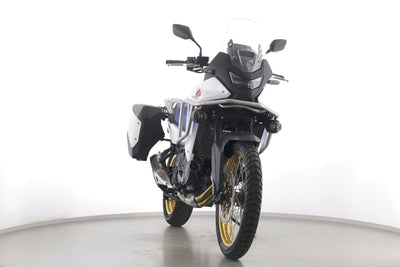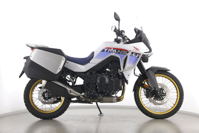 Eine Honda XL 750 Transalp als Neufahrzeug u.a. mit Seitenkoffer-System und Zusatzscheinwerfern.