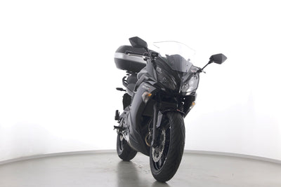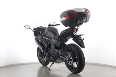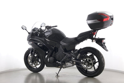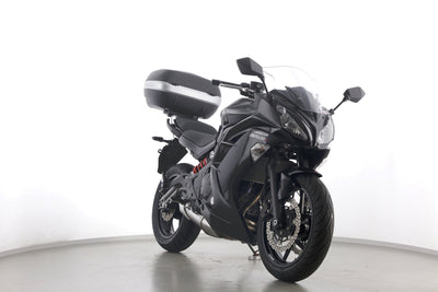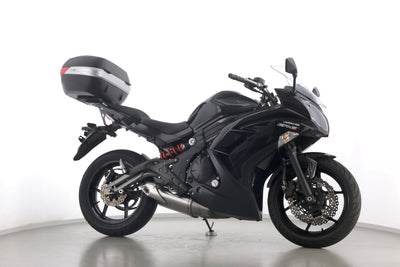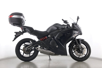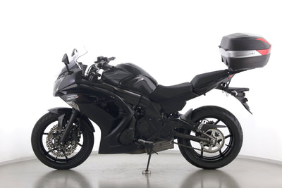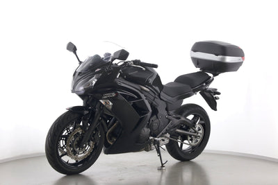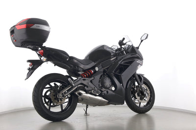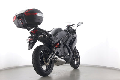 Eine scheckheftgepflegte Kawasaki ER-6f aus zweiter Hand in gepflegtem Zustand u.a. mit grossem Givi-Topcase und Montageheber-Aufnahmen.