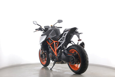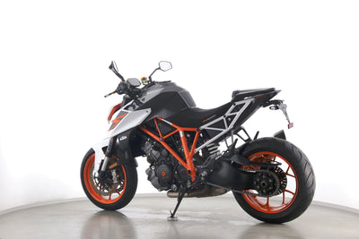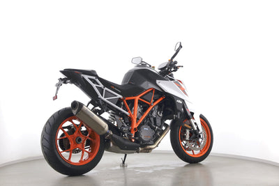 Eine KTM 1290 Super Duke R aus zweiter Hand in sehr gepflegtem Zustand u.a. mit Akrapovic-Endschalldämpfer und kurzem Kennzeichenhalter.