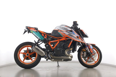 Wir bieten hier eine KTM 1290 Super Duke R EVO mit einer neuen Jahresinspektion inklusive 40-Punkte-Durchsicht. Alle unsere Fahrzeuge werden mit mindestens einem Jahr TÜV übergeben.