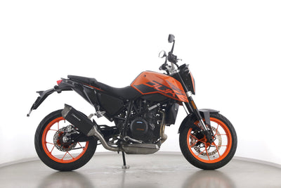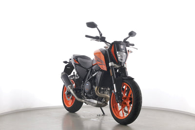 Eine scheckheftgepflegte KTM 690 Duke aus zweiter Hand in gepflegtem Zustand u.a. mit Remus-Endschalldämpfer sowie Montageheber-Aufnahmen.