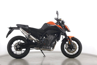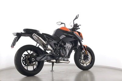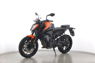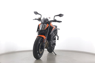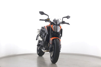 Eine scheckheftgepflegte KTM 890 Duke aus zweiter Hand in sehr gepflegtem Zustand u.a. mit KTM-Windschild und Powerparts-Fahrersitz.