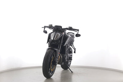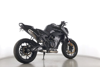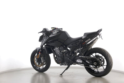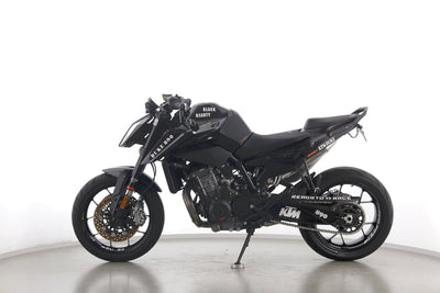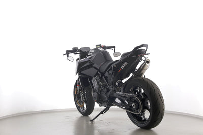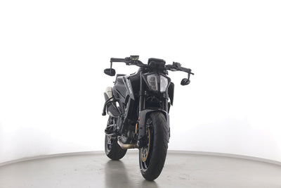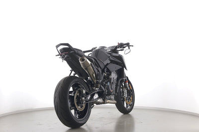 Eine KTM 890 Duke aus zweiter Hand in gebrauchtem Zustand u.a. mit Track-Pack und kurzem Kennzeichenhalter.