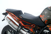 Eine scheckheftgepflegte KTM 890 Duke aus zweiter Hand in gepflegtem Zustand u.a. mit kurzem Kennzeichenhalter sowie einer Powerparts-Sitzbank.