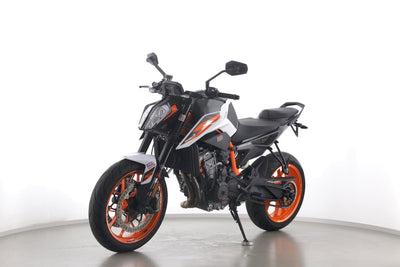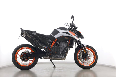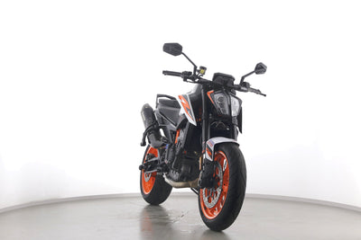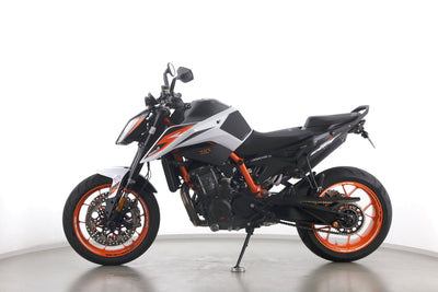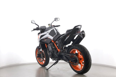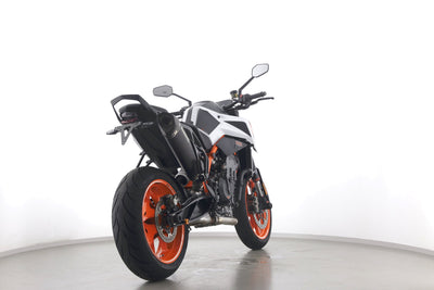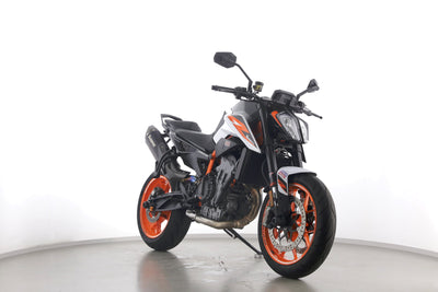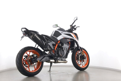 Eine KTM 890 Duke R aus zweiter Hand in gepflegtem Zustand u.a. mit Akrapovic-Endschalldämpfer sowie kurzem Kennzeichenhalter.