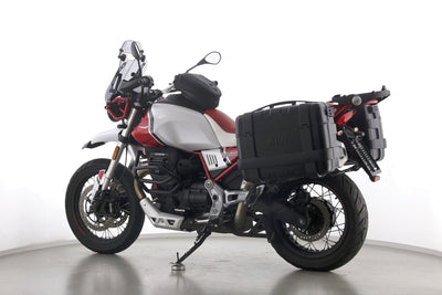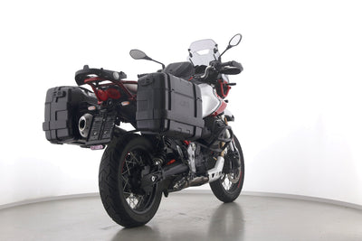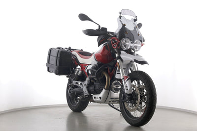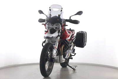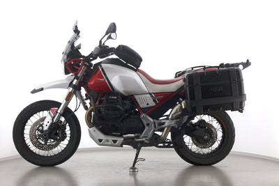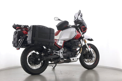 Eine Moto Guzzi V85 TT aus zweiter Hand in gepflegtem Zustand u.a. mit Givi-Koffersystem sowie Sturzbügeln in schwarz.