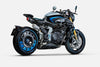 Die MV Agusta Rush verkörpert die extremste und visionärste Interpretation des Hyper-Naked-Konzepts. Mit der Einführung der Titanio-Edition, die durch eine Nero-Intenso-Lackierung in Kombination mit Argento Magnum und Blu Titanio gekennzeichnet ist, setzt MV Agusta neue Maßstäbe.