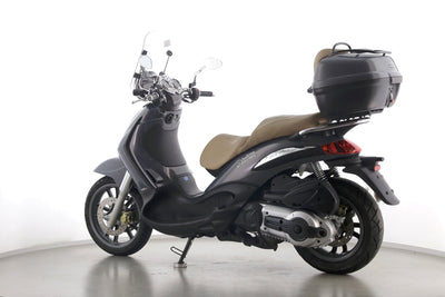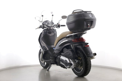 Ein Piaggio Beverly Cruiser 500ie in gepflegtem Zustand u.a. mit grossem Topcase sowie Piaggio-Scheibe.